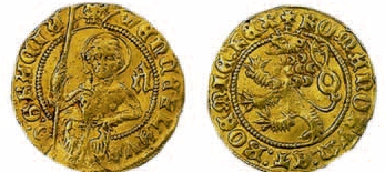 Die Goldmünzen haben auf der Vorderseite das Bildnis von König Wenzel