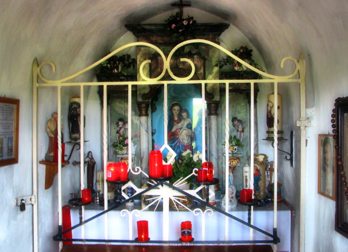 In diese Kapelle haben im Laufe der Jahrzehnte Gläubige der ganzen Gegend religiöse Gegenstände wie Kruzifixe, Bilder, Kerzen usw. gebracht, die ihnen zum Wegwerfen zu schade waren. Das Innere wirkt deshalb etwas überladen.