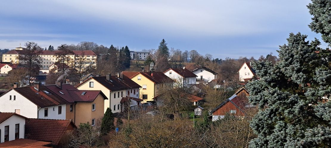 Rathaus in Auerbach, den Bürgerwald, den Rabenfels und die Maximilianswand, die