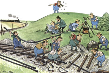Ganz so wie hier dargestellt wird es wohl nicht gewesen sein beim Bau der Gleisstrecke von Ranna nach Auerbach
