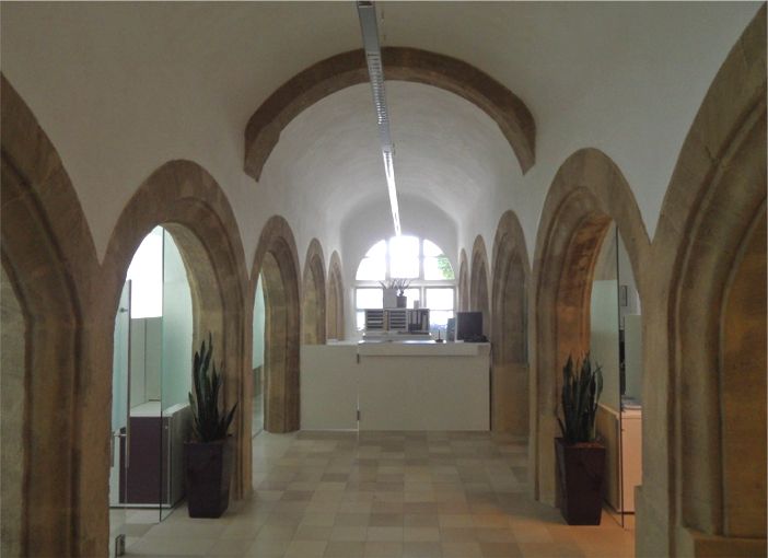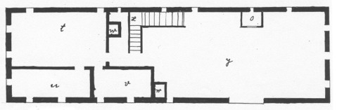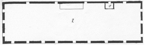 (v) und ein sehr weiträumiger Vorplatz (y), der auch „Ratssaal“ genannt