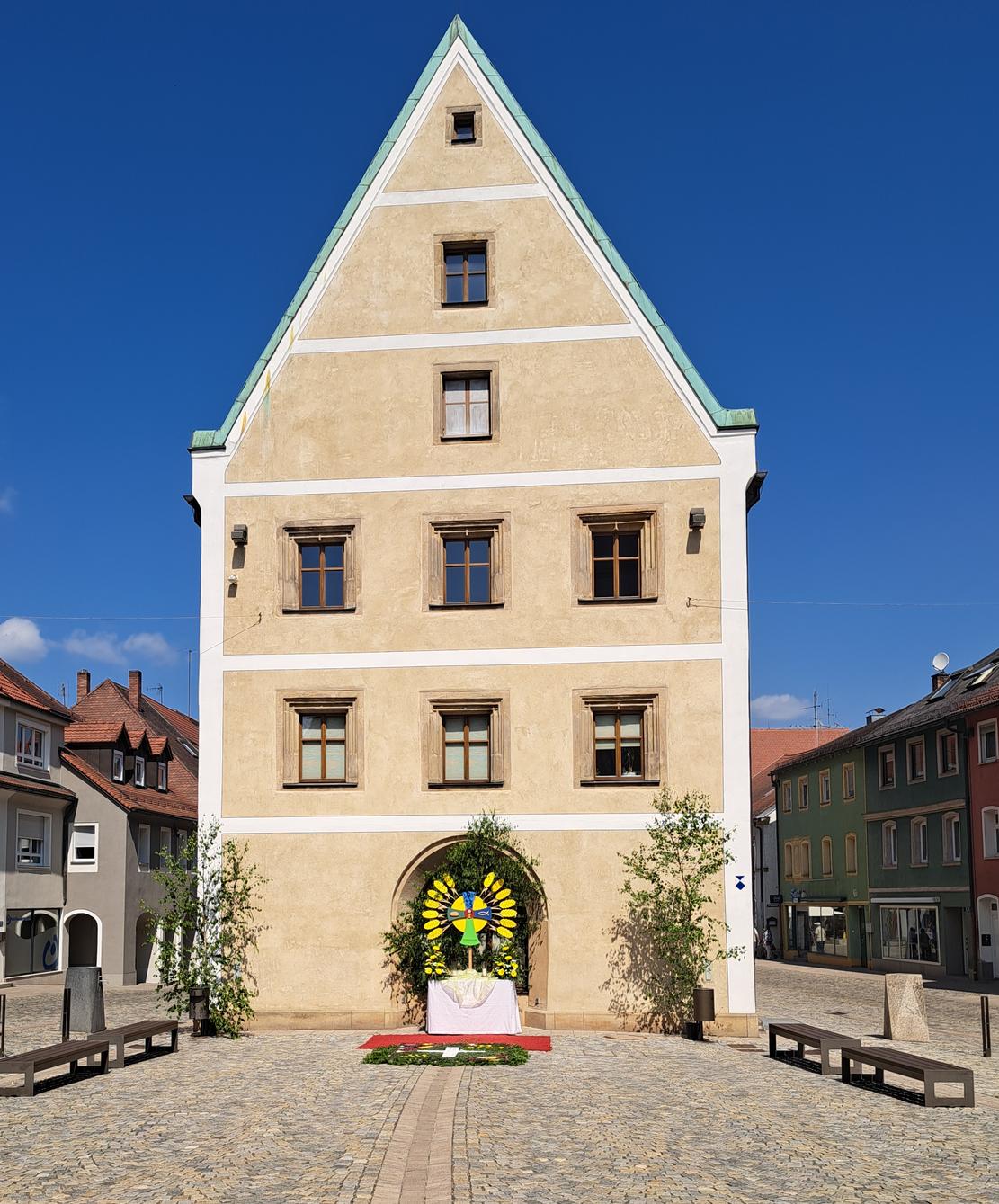 Der 1. Altar war am Rathaus zur Kirche hin, aber praktisch ebenerdig ohne das große Podium.
