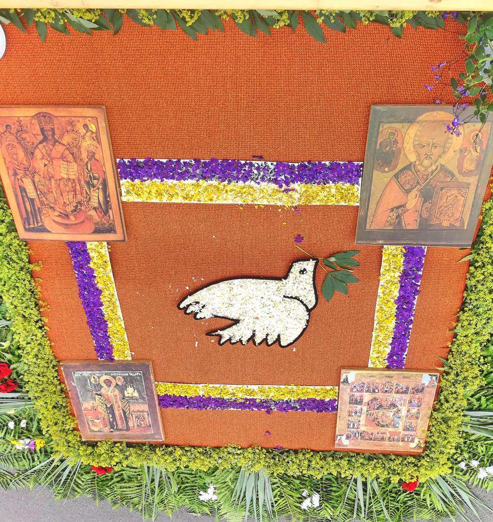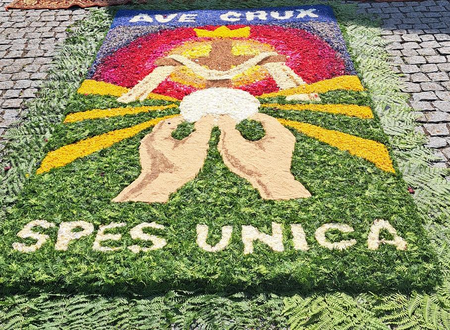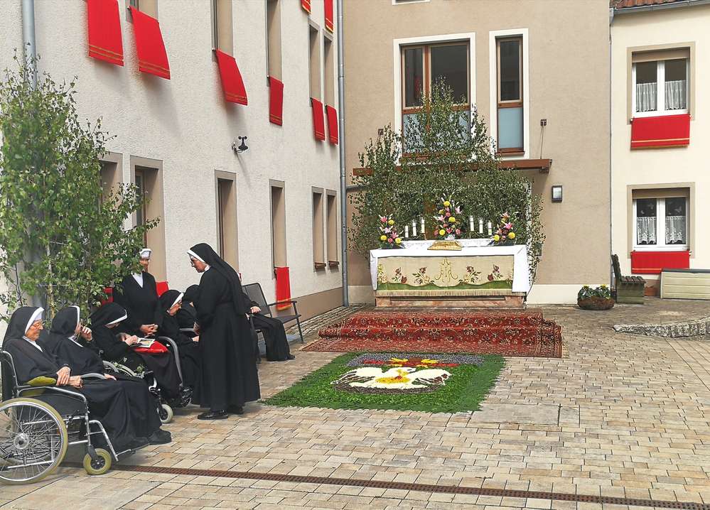 Den Blumenteppich und den Altar hatten die Schulschwestern gestaltet.