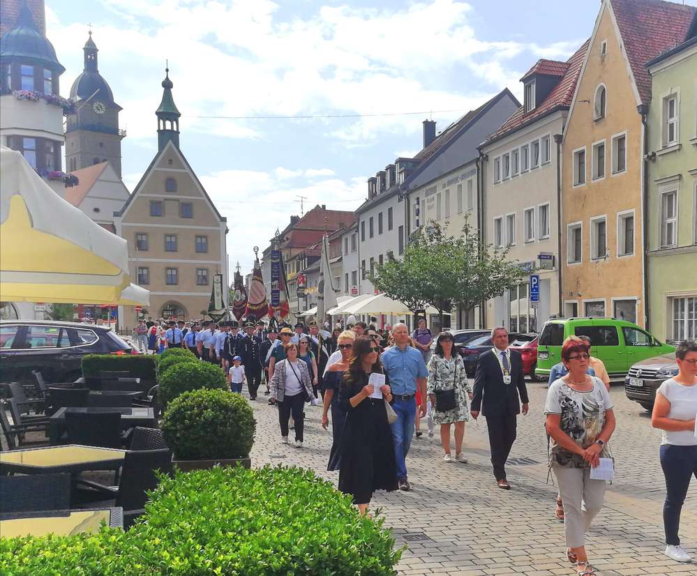 Über die Untere Vorstadt führte der Prozessionsweg zurück zur Pfarrkirche. Dankenswerterweise hat die Feuerwehr wieder die Sicherung des Zugwegs übernommen.