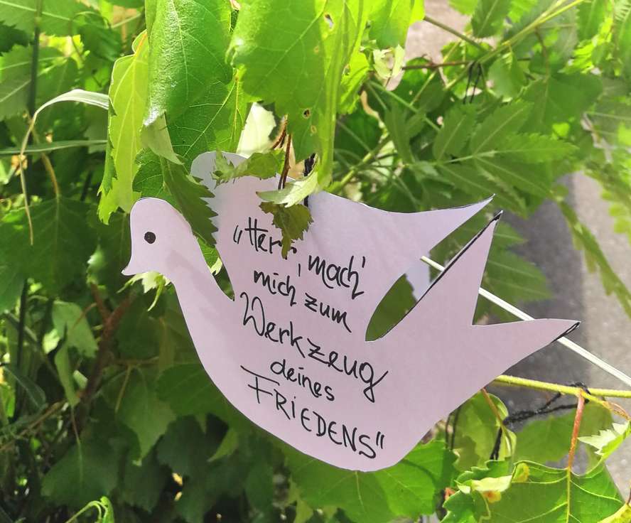 Dann ging es über die Degelsdorfer Straße und den Novettaweg zum 4. Altar bei der Mariensäule am Caritasheim.