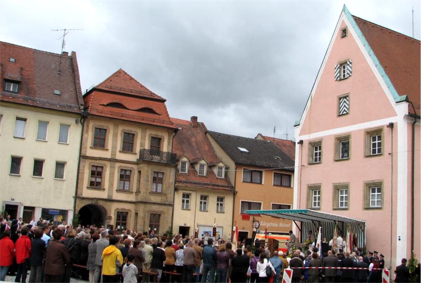 Schon zu Beginn des Gottesdienstes auf dem Oberen Marktplatz vor dem Rathaus zeigten sich dunkle Wolken am Himmel. "Wird es aushalten?" lautete die bange Frage.