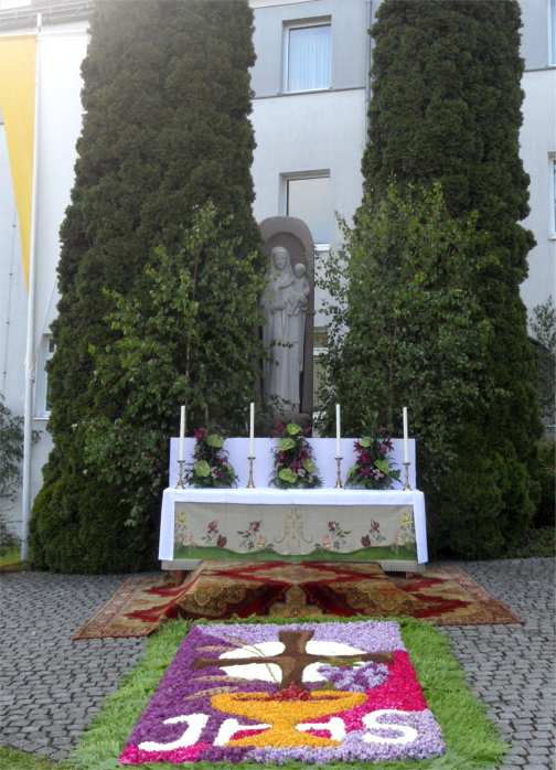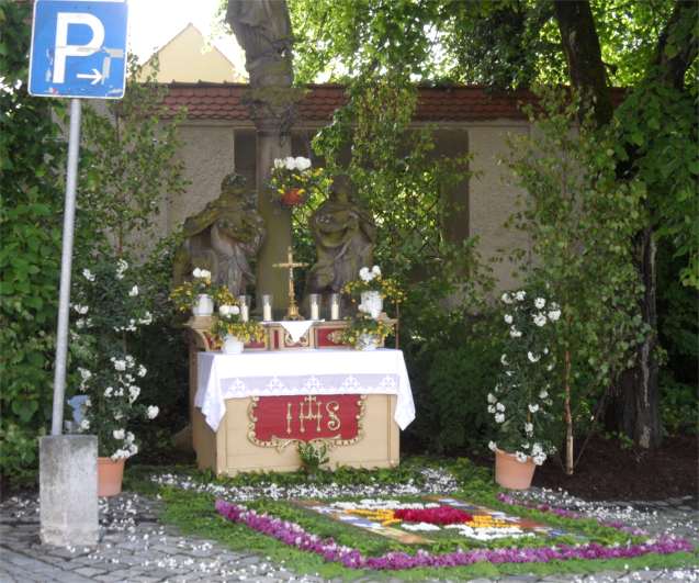 Für den gut gelungenen Blumenteppich am Altar bei der Marienapotheke zeichnete in bewährter Weise die KLJB Nitzlbuch verantwortlich.