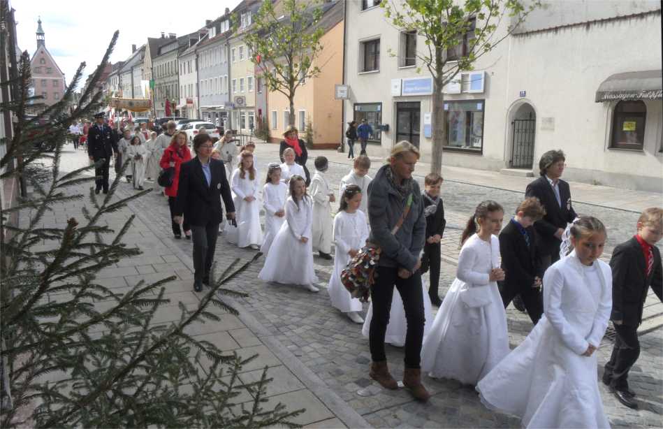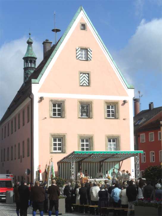 Fronleichnam 2013 Am Donnerstag, den 30. Mai, dem Fronleichnamsfest des Jahres 2014, begann die traditionelle Prozession wie üblich mit einem Gottesdienst vor dem Rathaus.