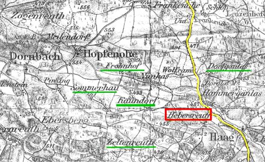 Hebersreuth (Bild oben aus 1, Seite 144) bildete zusammen mit Dorfgänlas, Frohnhof,