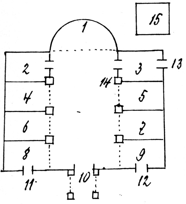 Die Einteilung der dreischiffigen romanischen Holzkirche von 1144 nach Köstler: