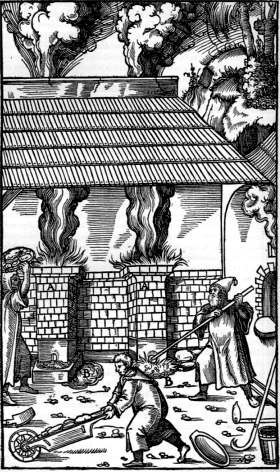 (Bild "Die Schmelzöfen" aus 4, Seite 312)