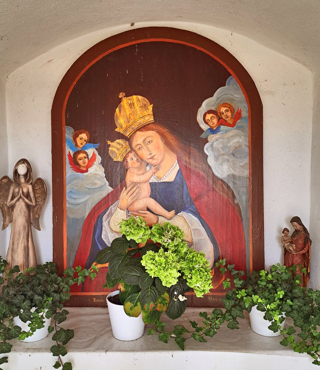 ein neues, modernes Marienbild für die alte Steinsäule. Die