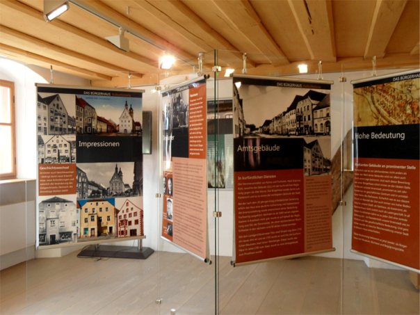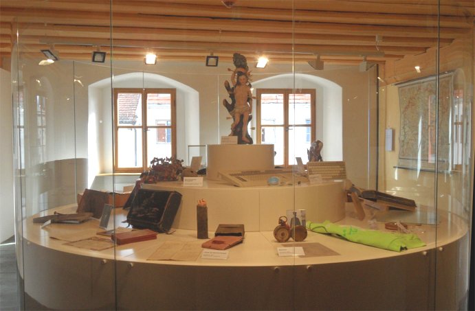 In vom Oberpfalzfernsehen OTV aufgenommenen und an einem Großbildschirm abrufbaren Videosequenzen kommen der Bürgermeister, der Architekt, ein Bauhistoriker und ein Heimatkundler zum Thema Burgerhaus ist jetzt Bürgerhaus zu Wort. 3. Die Dauerausstellung In diesem Rondell, in zwei Eckvitrinen und an den Wänden werden bemerkenswerte und kuriose Gegenstände aus der älteren und der jüngsten Geschichte unserer Heimat präsentiert. In einem computergestützten Terminal sind Texte zu den einzelnen Exponaten abrufbar. 4. Sonderausstellungen