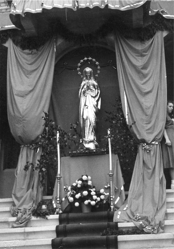 Dabei strahlte vom Turm das hellbeleuchtete Standbild der Muttergottes weithin