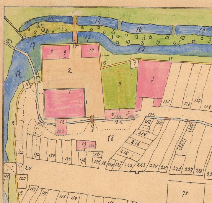 Nummer 183 ½ , heute etwa Schlosshof 4, und verwendete dabei die Steine und Trümmer