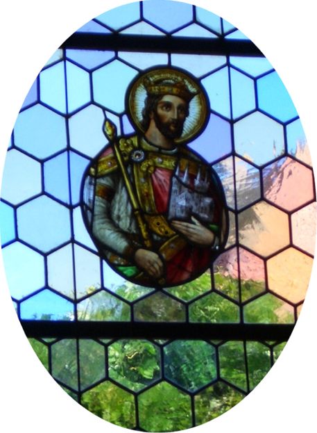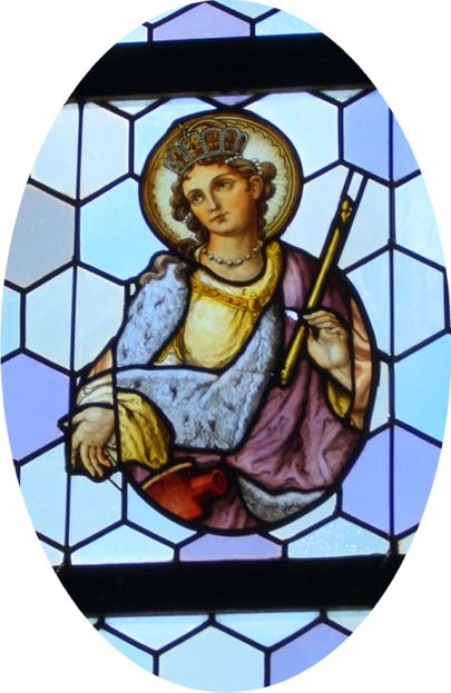 heilige Kunigunde (rechts) und ihren Gemahl Kaiser Heinrich II. dar; die Glasbilder