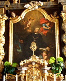 Altarblatt steht der mit gewundenen Säulen verzierte Tabernakel