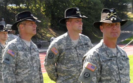 Rechts ist der scheidende Kommandeur Colonel James R. Blackburn,