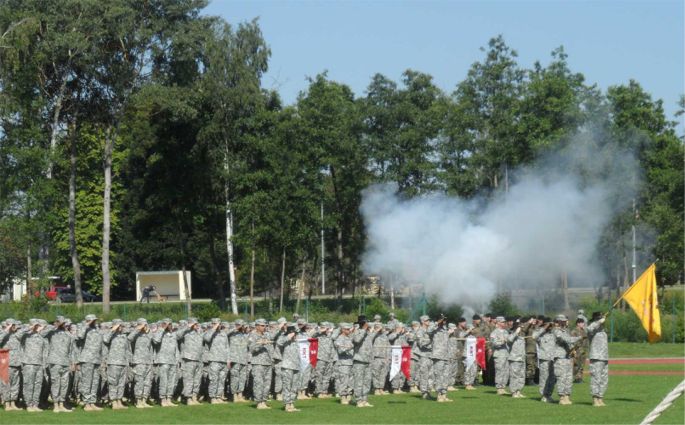 der US-High-School. Angetreten waren alle sechs Schwadrone der Strykerbrigade
