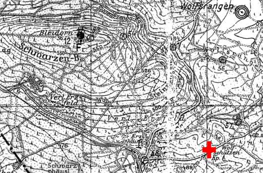 lag etwa 800 m südlich von Dornbach am Weg, der von